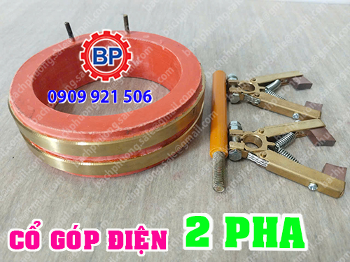 Cổ góp dùng cho động cơ điện bao gồm: + Vành trượt 3 pha (55*100*90mm) + Chổi than J164 - 8*20*40mm + Giá đỡ chổi than nhôm |