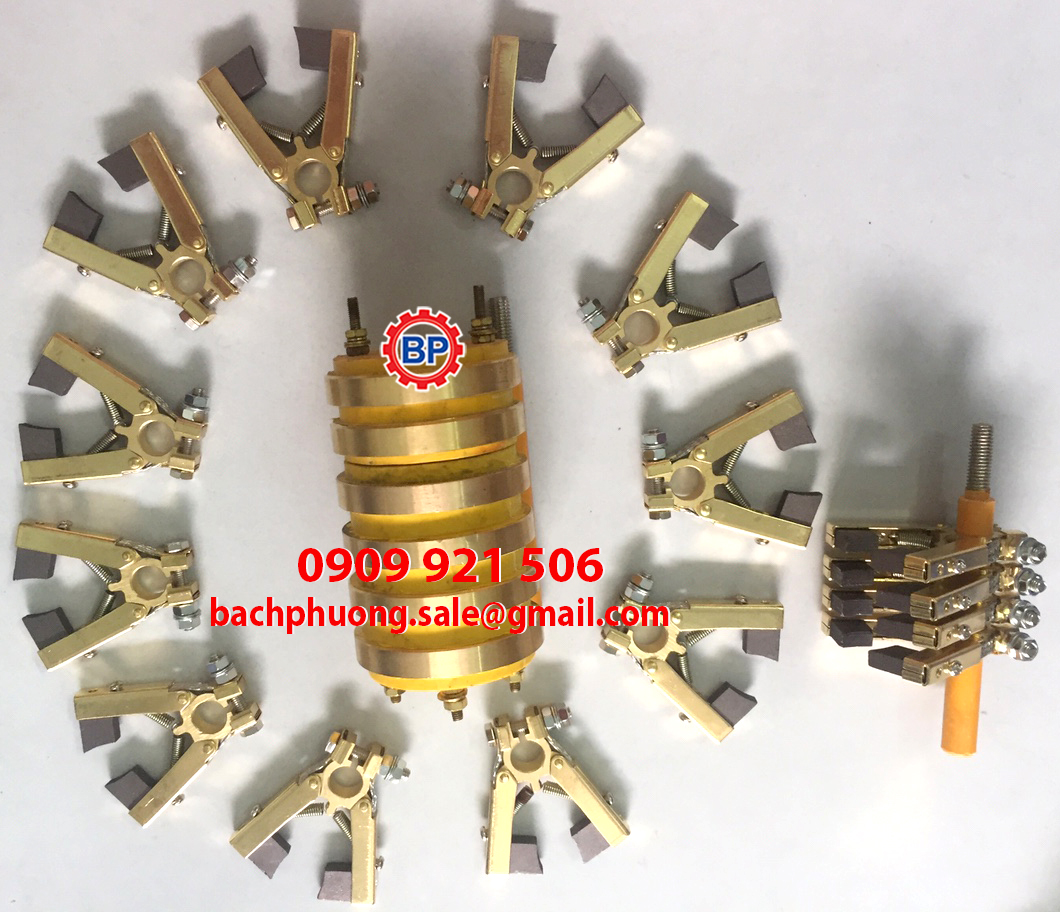 Cổ góp điện cho máy đóng gói có cấu tạo gồm 1 vành góp 4 cực, 1 cây ti, và 4 cần than. Ngoài ra loại cổ gốp điện này còn sử dụng cho quạt sáy gạch …